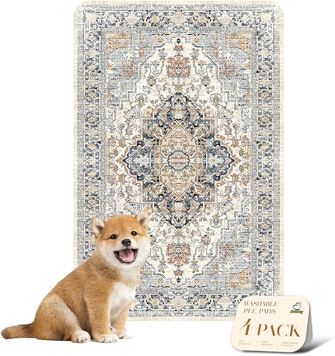 nunubaby 4PACK Washable Pee Pads for Dogs, Stylish, Non-Slip and Leak-Proof Pee Pads. Reusable Potty Pads for Dogs for Crates and Floors.(Beige/Multi, 24" x36")