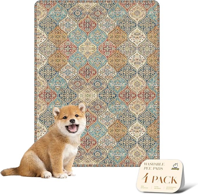 nunubaby 4PACK Washable Pee Pads for Dogs, Stylish, Non-Slip and Leak-Proof Pee Pads. Reusable Potty Pads for Dogs for Crates and Floors.(Cream/Multi, 18" x24" )