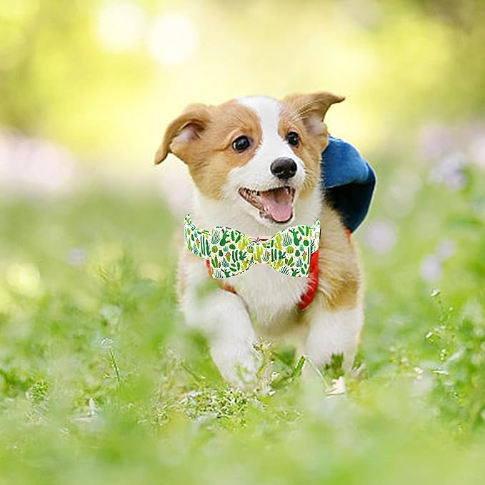 Lionheart glory Dog Bow Collar Green Cactus Print Collars for X-Large Dogs,Spring Summer Cute Dog Collar with Bowtie Pet Collars Bows Pet Gift