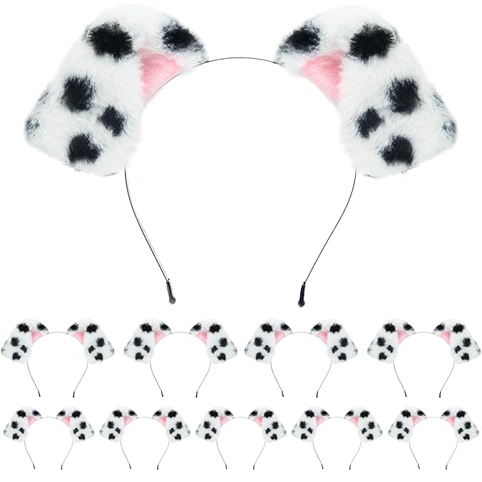 Beviliu 10 Pack Animals Ear Realistic Dalmatian Dog Ears Headband Fluffy Cat Bunny Pig Hairband Halloween Christmas Costume for Washing Makeup Cosplay Party