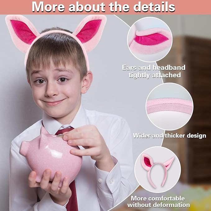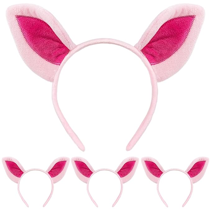 Beviliu Pig Ears Headband - Animal Pig Ears Costume for Adult, Cat Dog Bunny Fox Ears Headwear for Halloween Christmas Animal Theme Party Cosplay, 4Pack