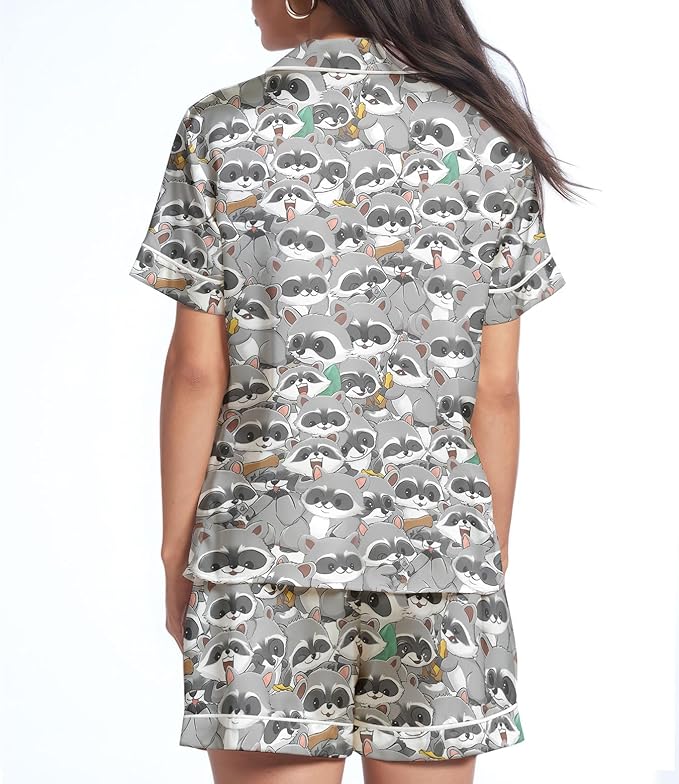 Women’s Silk Satin Pajama Set, Short Sleeve Button Down 2 Piece PJs with Shorts, Cozy Loungewear & Matching Holiday Pajamas