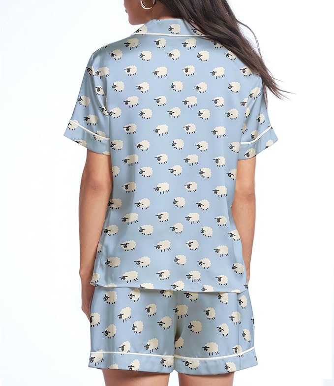 Women’s Silk Satin Pajama Set, Short Sleeve Button Down 2 Piece PJs with Shorts, Cozy Loungewear & Matching Holiday Pajamas
