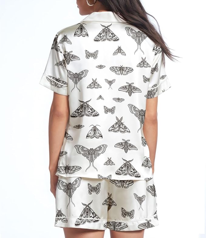 - Women’s Silk Satin Pajama Set, Short Sleeve Button Down 2 Piece PJs with Shorts, Cozy Loungewear & Matching Holiday Pajamas