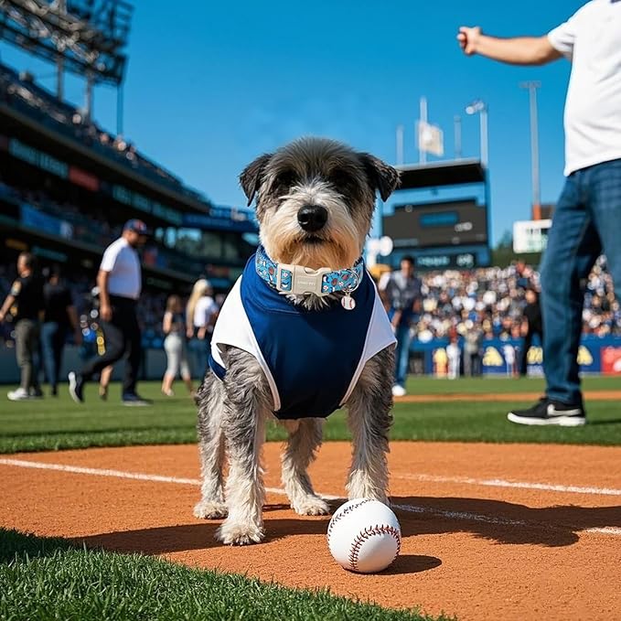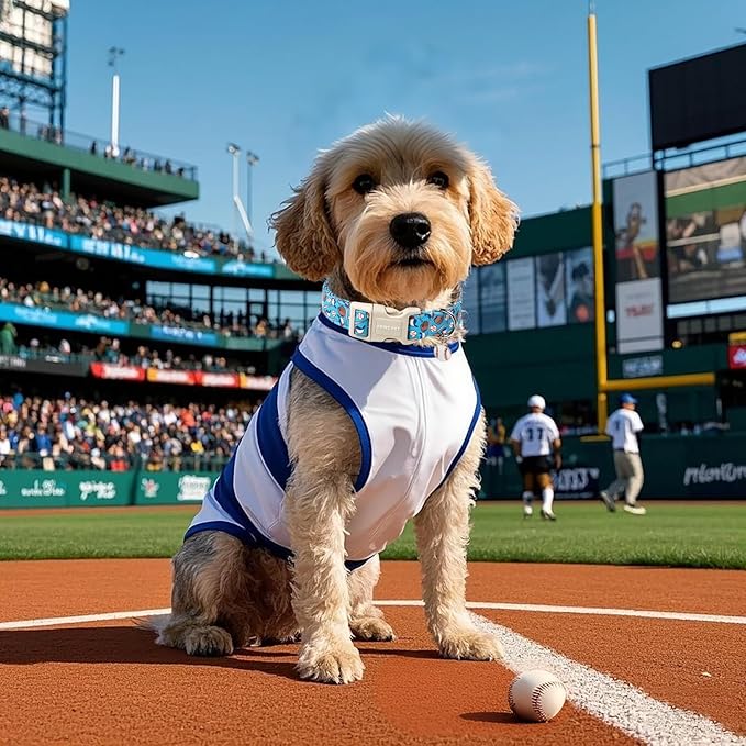 ARING PET Baseball Dog Collar, Cute Summer Blue Pet Collars with Quick Release Buckle for Puppy Small Medium Large Boy Girl Dogs-XS