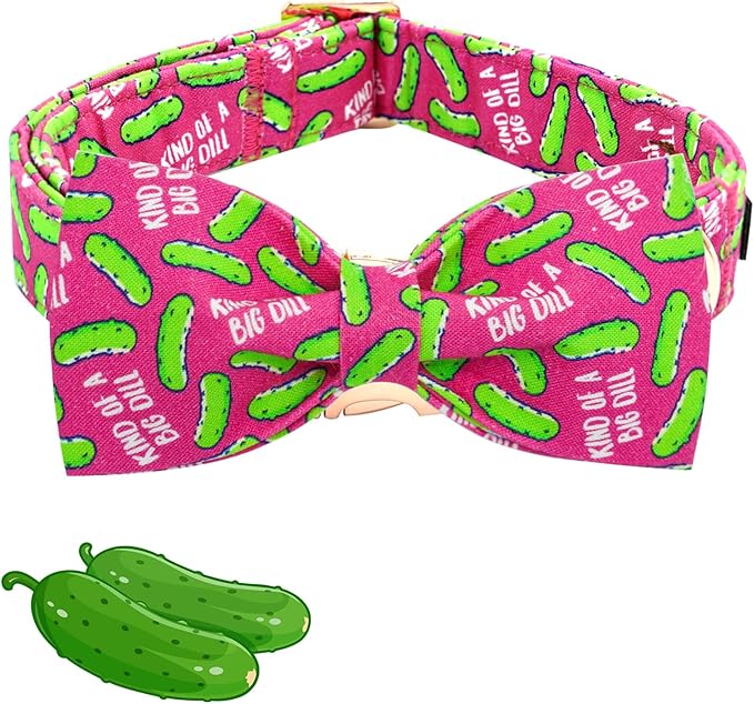 Elegant little tail Dog Collar, Dill Pickles Print Pet Collars with Bow Soft Cutton Boy Puppy Gift Adjustable Pink Bowtie Dog Collar for X-Large Dogs