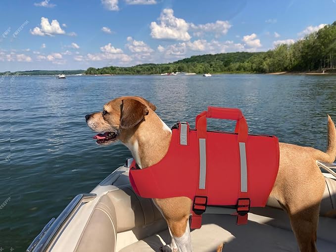 Queenmore Dog Life Jacket, Large Dog Life Vest for Swimming, Doggie Life Vest for Swimming Large Breed, Pet Life Jackets for Boating with Rescue Handle Pet Floating Lifesaver for Pool (Red, L)