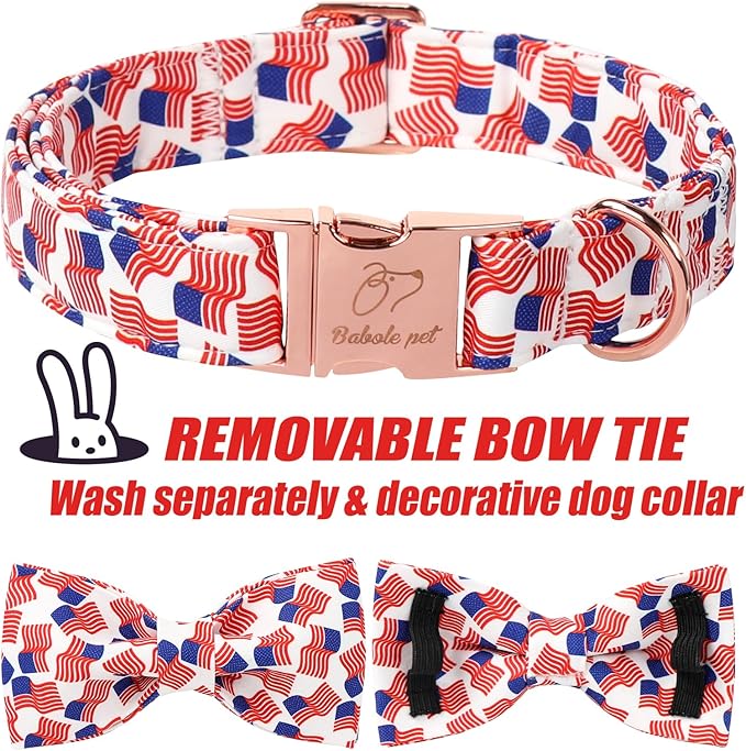American Flag Dog Collar with Bow Tie - 4th of July US Flag Bowtie Collar Independence Day Safety Patriotic Dog Collars for Small Medium Large Dogs S
