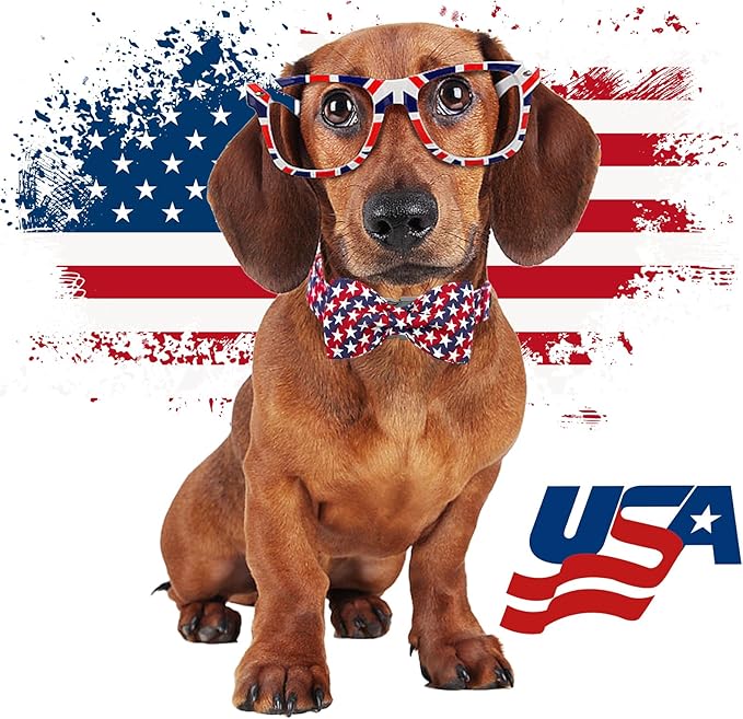 Lionheart glory American Flag Dog Collar 4 of July Independence Patriotic Dog Bow Collars Heavy Duty Adjustable Soft Collar with Bowtie for Small Dogs Pet Gift