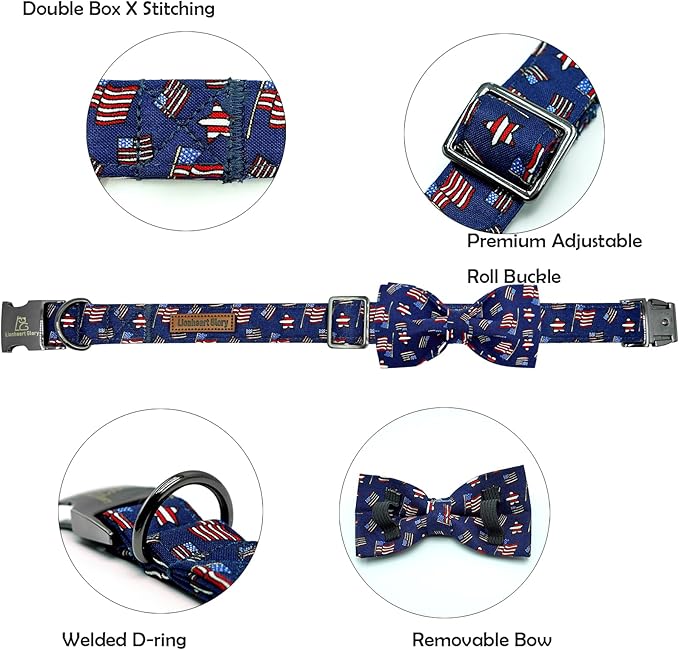 Lionheart glory American Flag Dog Collar 4 of July Independence Patriotic Dog Bow Collars Heavy Duty Adjustable Soft Collar with Bowtie for Small Dogs Pet Gift