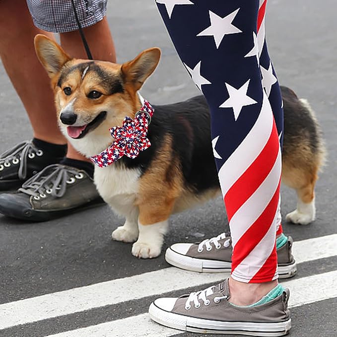 Lionheart glory American Flag Dog Collar 4 of July Dog Collars with Flower Independence Patriotic Dog Flower Collars Heavy Duty Adjustable Collar Flower for Medium Dogs Pet Gift