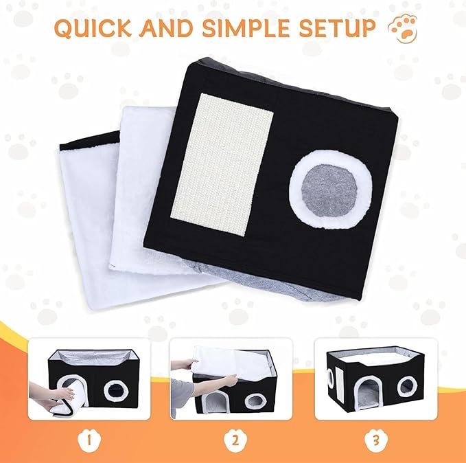- Effortless Assembly & Storage: Say goodbye to tools and hardware! This cat shelter is a breeze to set up without any screws or extra parts. Plus, it's foldable and compact, making it a space-saver under couches, beds, or in closets. Perfect