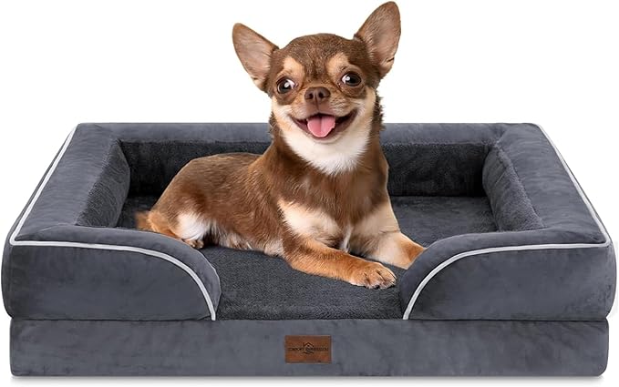 Comfort Expression Orthopedic Dog Bed for Small Dogs 24x16 Inch, Waterproof Supportive Egg Crate Foam Small Pet Bed with Removable Bolsters, Dog Couch with Washable Cover & Non-Slip Bottom, Dark Grey