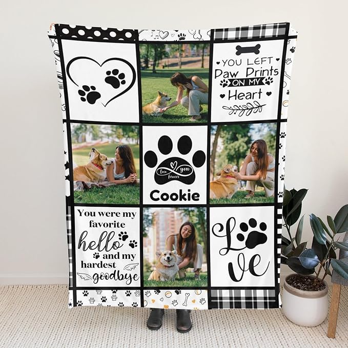 Artsadd Peporsonalized Photo Dog Blanket - Custom Pet Memorial Gift for Loss of Dog or Cat, Memorial Gift for Loss of Pet