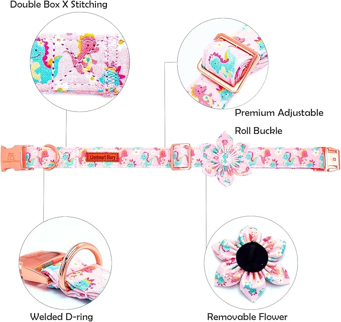 Lionheart glory Dog Collar with Flower Dinosaurs Print Collars for Large Dogs, Spring Summer Cute Duty Adjustable Dog Flowers Collar Puppy Collars Bows Pet Gift
