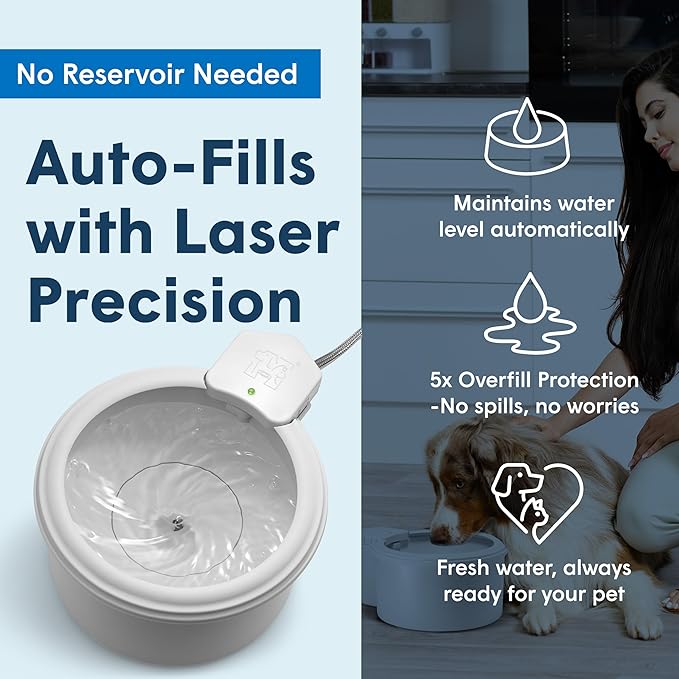 - Smart Laser Technology for Automatic Refills: The Always Full Pet Water Bowl uses precision laser technology to monitor water levels, so your furry friend always has fresh water; When the water level drops by 10mm, the bowl automatically refills ensuring your furry friend always has fresh water, so you can spend less time filling cat & dog bowls and more time enjoying moments with your pet
