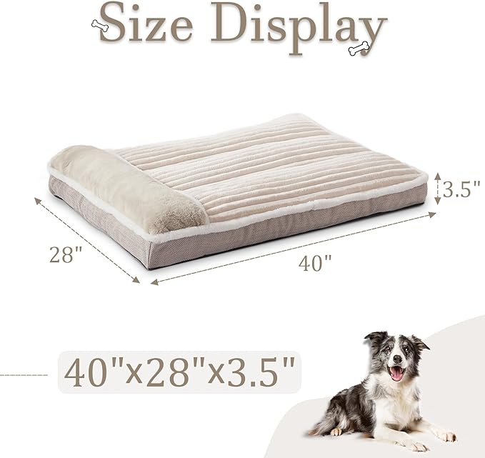 Dog Bed for Large Dogs, Dog Mattress with Pillow for Crate Kennel, Sofa pet Bed, Super Soft pet Bed for Medium, Jumbo, Small Dogs Breeds (Beige, X-Large:(40"x28"x3.5")