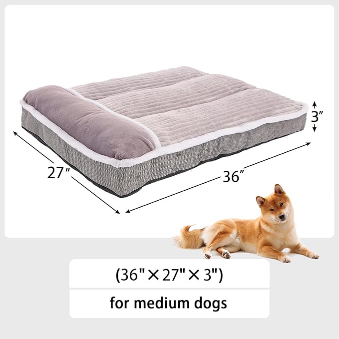 Dog Bed for Large Dogs, Dog Mattress with Pillow for Crate Kennel, Sofa pet Bed, Super Soft pet Bed for Medium, Jumbo, Small Dogs Breeds (Grey, Large:(36"x27"x3")