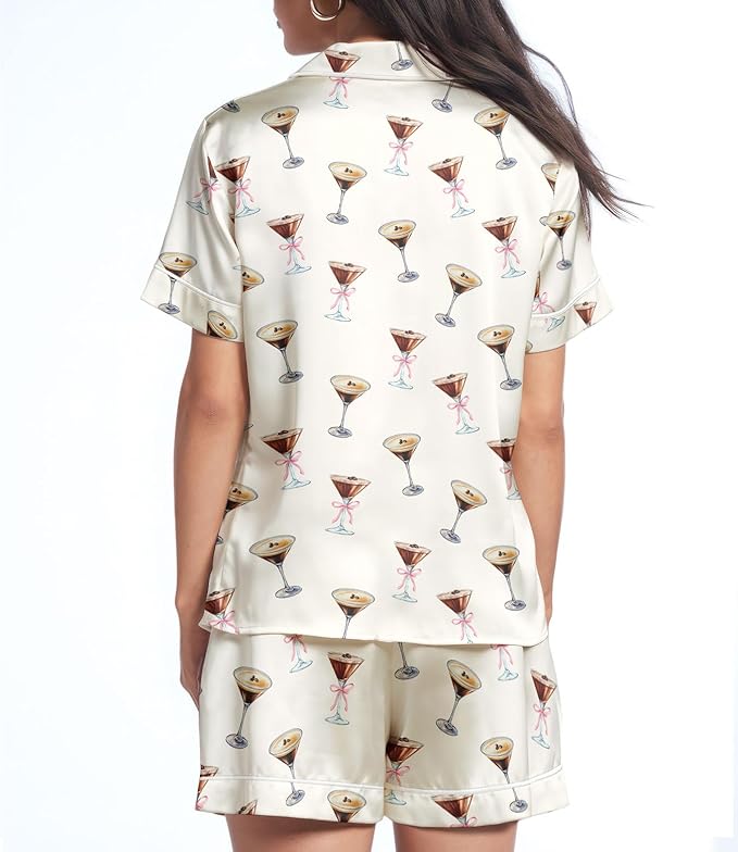 - Women’s Silk Satin Pajama Set, Short Sleeve Button Down 2 Piece PJs with Shorts, Cozy Loungewear & Matching Holiday Pajamas
