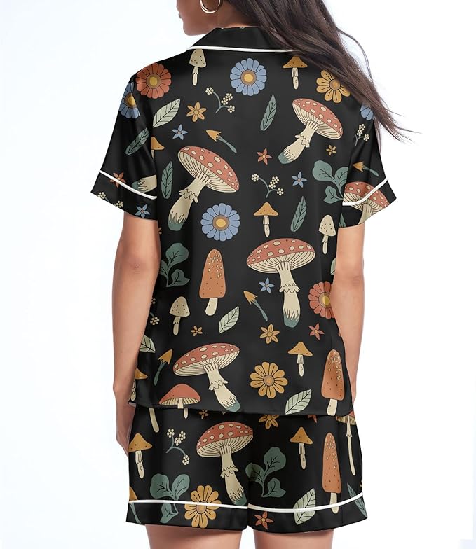 Women’s Silk Satin Pajama Set, Short Sleeve Button Down 2 Piece PJs with Shorts, Cozy Loungewear & Matching Holiday Pajamas