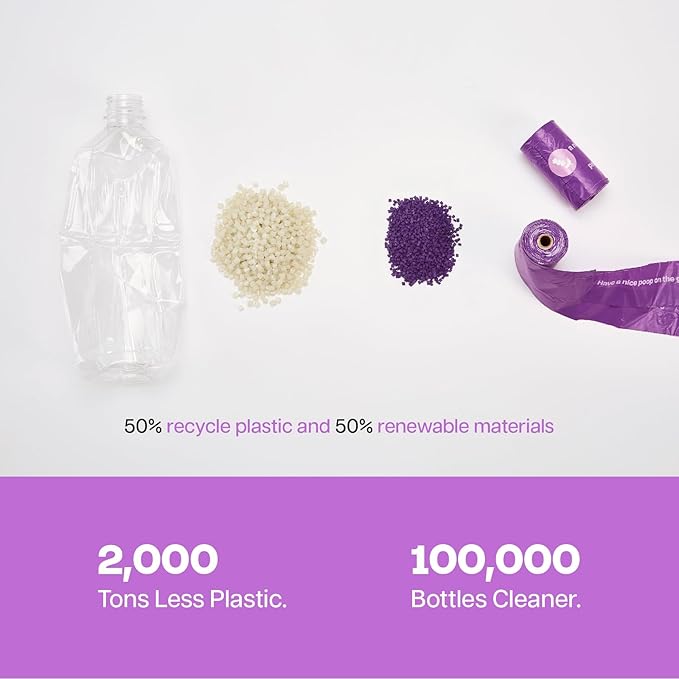 - Made from Corn Starch & Rececly Material: To craft the best produts for a sustainable liftstyle, our poop bags are made from 50% certified renewable resourses and 50% constarch, just do our best to create a poop bags which is earth-friendly.