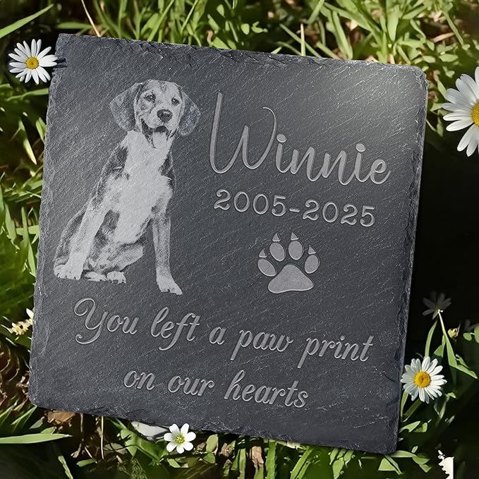 - Premium and Durable Material: The pet memorial stone is made from hard slate stone and the engraving, provide durability against heat and humidity weather conditions and last for years.