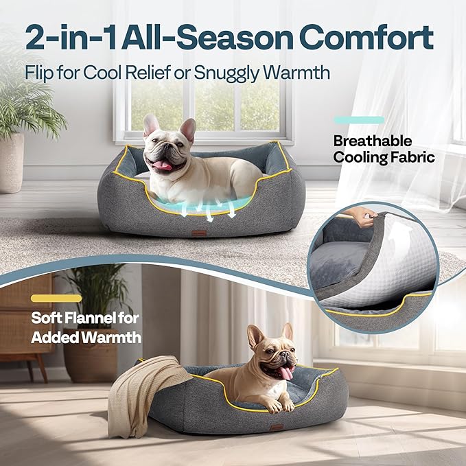 Large Orthopedic Dog Bed 28" Washable with Removable Cover, Waterproof & Non-Slip Base, Year-Round Comfort with Cooling/Warming, Dual-Layer Interior Padding for Support and Softness, Grey