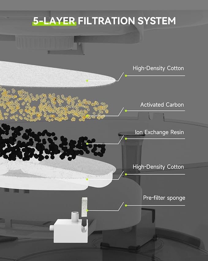 - 【Health-Conscious Design】Made with BPA-free, food-grade materials, FP30 water fountain ensures your pets drink safely. Its generous 7L capacity is perfect for large dogs or multiple pets, while the 6-layer filtration system helps remove impurities, providing fresh, clean water with every sip.
