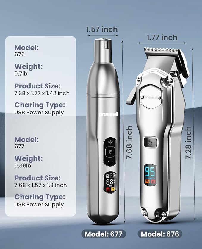 - [All in One Dog Grooming Kit-Beginners-Friendly] Oneisall 4-in-1 professional dog clippers kit make grooming simple for beginners and experts alike. Includes 9 guard combs (3-21mm) for perfect styling everywhere, easily trim body fur, shape delicate facial contours, trim paw pads, and nail polishing. Satisfy all your pet grooming needs. Save hundreds on salon visits while keeping your pup perfectly groomed. Works on all breeds and coat types.