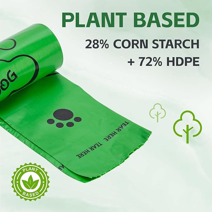 - ULTRA THICK: 20-micron ultra thick leak proof doggie bags for poop ensure no mess while picking up after your small dog or puppy. Made with 28% plant-based corn starch and durable HDPE material, these scented poop bags for dogs mask odors with a pleasant baby powder fragrance.