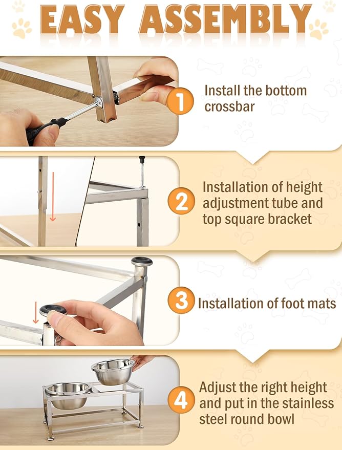 - Sturdy & Stable: The dog bowls elevated features thick, rust-proof stainless steel bowls, the strong metal stand offers dependable support, while the anti-slip pad on the bottom keeps the bowl in place, minimizing the risk of spills or tipping during mealtime.