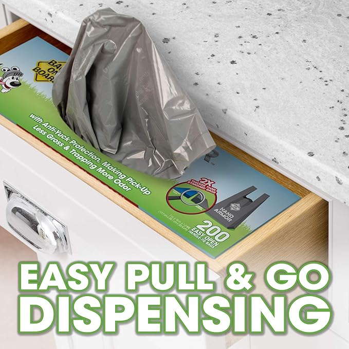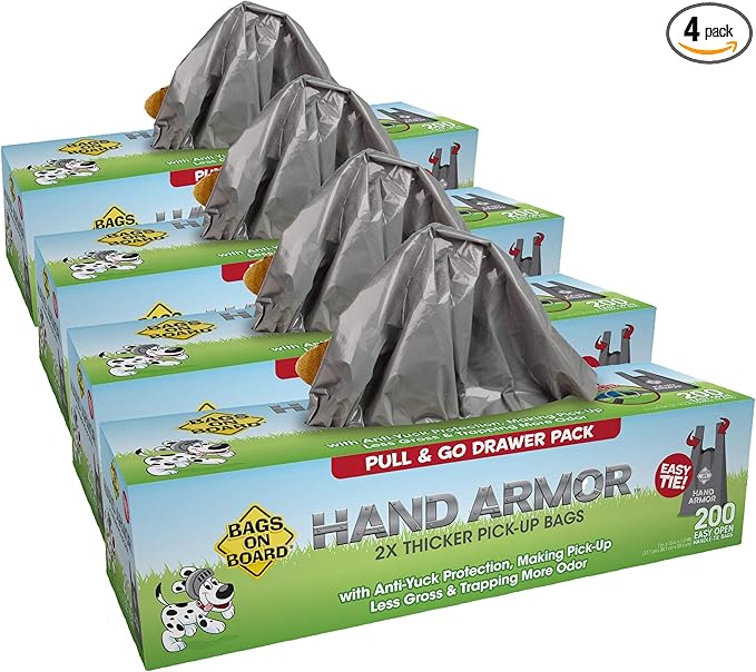 Bags on Board Dog Poop Bags - Extra Thick Waste Pickup Bags with Easy Tie Handles - Easy Dispensing Drawer Pack - 200 Count (Pack of 4)
