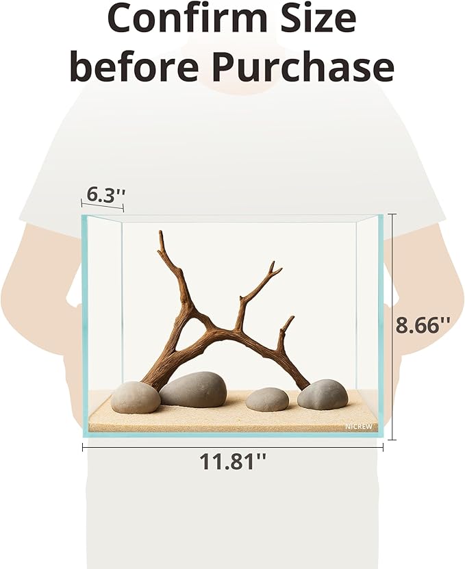 NICREW 2.5 Gallon Nano Nature Aquarium Kit, Ultra-Clear Rimless Desktop Fish Tank with Light and Filter, Perfect for Small Fish, Shrimp, or Betta, Basic Version, Clear