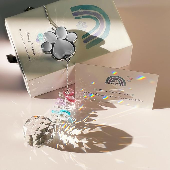 - Hanging Rainbow Maker: Hang this pet memorial crystal rainbow catcher by a window, on a balcony, in the yard, in the garden, or in the bedroom. As light passes through the crystal prism, enchanting rainbow colors fill the entire space, instantly evoking memories of your beloved dog and warming every corner of your heart.