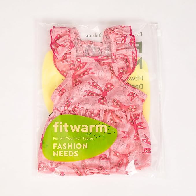 Fitwarm Ruffle Sleeves Bowknot Dog Dress, Birthday Clothes for Small Dogs Girl, Pet Outfit, Pink, XXS