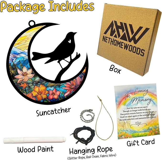 Bird Memorial Suncatcher, Personalized Rainbow Bridge Remembrance with Name & Date, Bird Lover Passing Away Gift, Loss of Pet Bereavement Gifts, Hanging Window Decor, Car