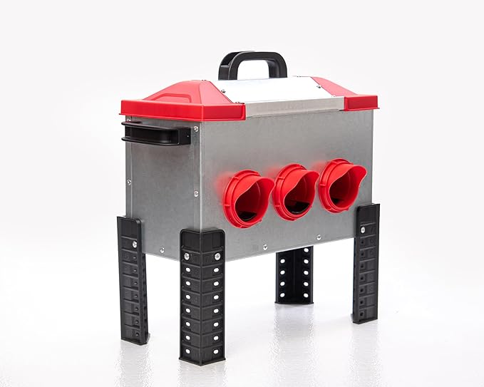 RentACoop Flock Feeder 15 Metal Chick2Chicken Feeder – Space-Saving Weatherproof Poultry Feeder with 6 Ports, Adjustable Legs, Rain Covers for Chicks, Chickens, Quail, Bantams, and Other Small Birds