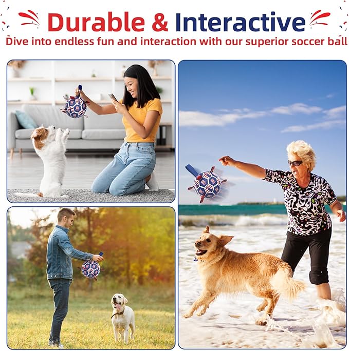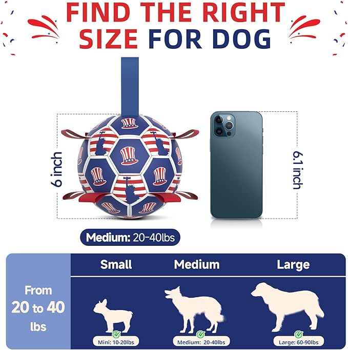 Diman Dog Toy Soccer Ball : Outdoor Dog Toys, Dog's Independence Day Gift, Dogs Soccer Ball with Straps for Tug of War, Pet Birthday Gift for Small Medium (6 Inch)