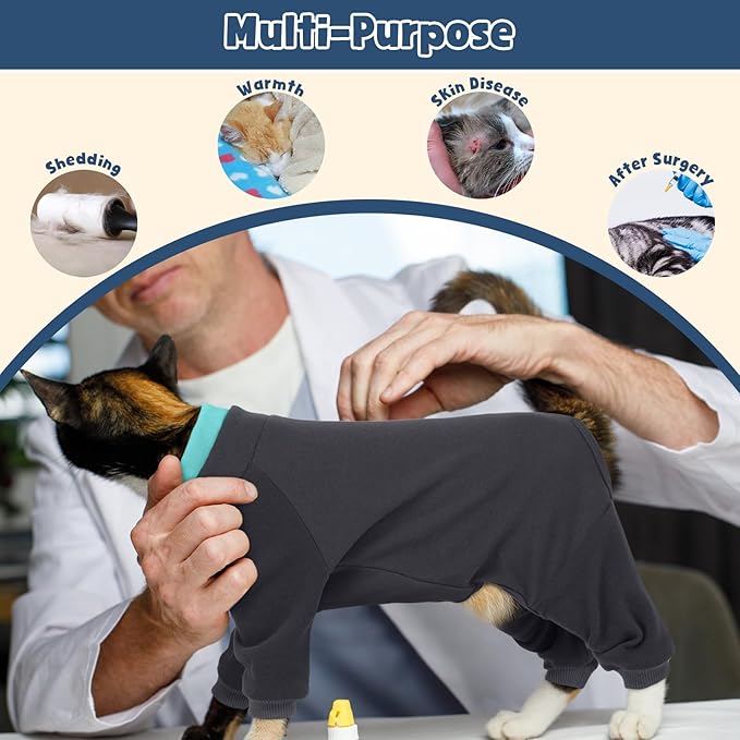 Cat Hair Sticky Onesie, Prevent Hair Loss Cat Pajamas, Long Sleeves Anti-Licking & Skin Disease Recovery Suit for Cats, Sphynx Clothes Costumes Outfits for Pet
