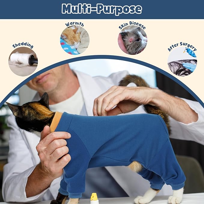• CAT SURGERY SUIT FOR ABDOMINAL WOUNDS: The surgical cat recovery suit full bodysuit is designed to effectively protect your pet's wounds, spots, incisions, bandages, hot spots, infections, and skin herpes; This soft cat recovery suit for cats or small dogs which can better fit the pet's body reduce contact with potential allergens