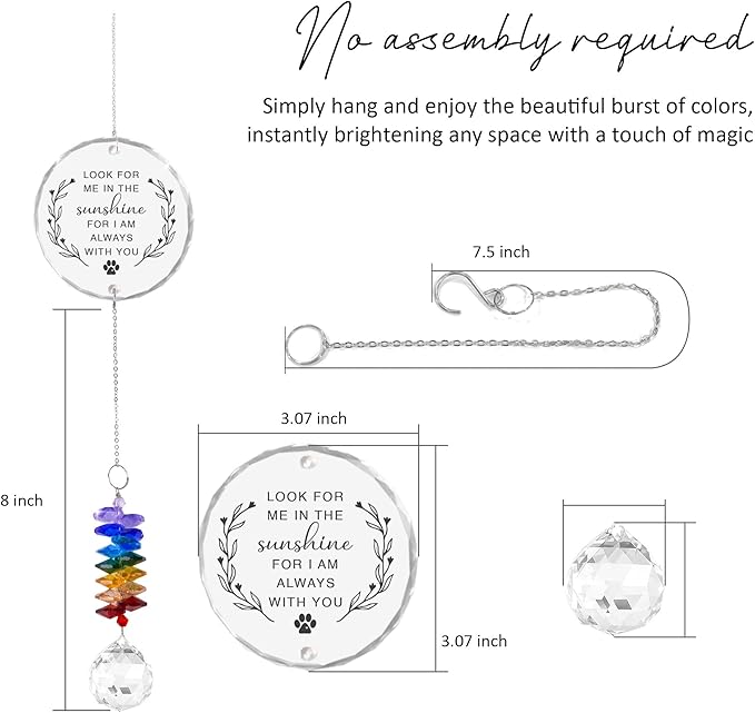 - ✨ Premium Glass & Crystal Build: Crafted from durable glass and crystal elements, this Pet Loss Crystal Decor is built to last. Perfect for hanging on a window, garden, car mirror, or Christmas tree as a constant memory.