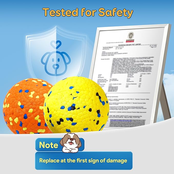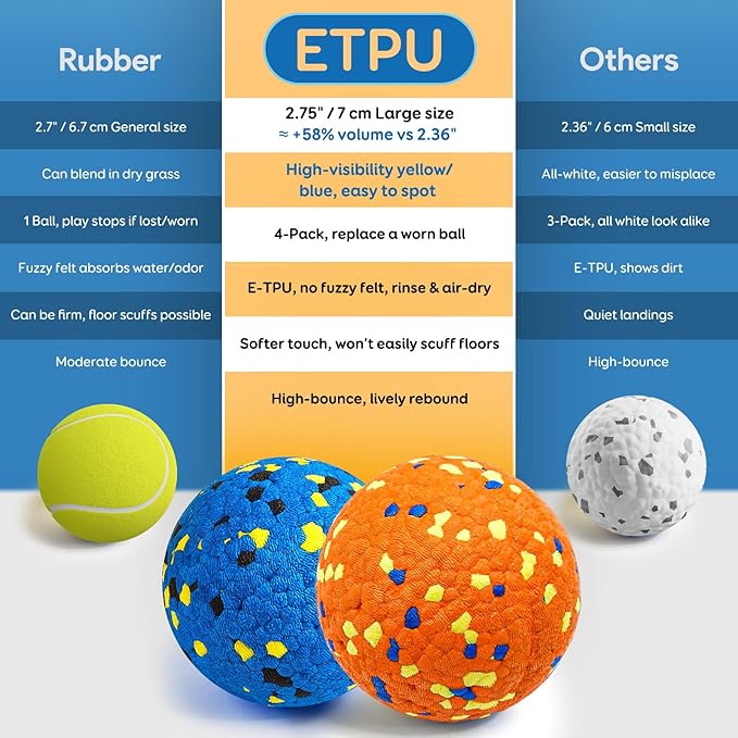 Dog Balls, Indestructible Tennis Balls for Aggressive Chewers, ETPU High-Bounce Floating Fetch Toys for Small & Medium Large Puppies, 4 Pack 2.75''