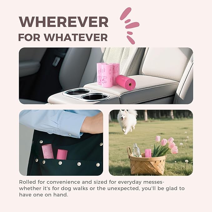 - Two Pink Styles In Every Box – Each set of Pikoto baby powder scented dog bags includes 8 rolls (128 bags total) with two designs: 4 rolls in playful light pink & 4 in bold dark pink. Not every walk looks the same - your poo bags don’t have to either