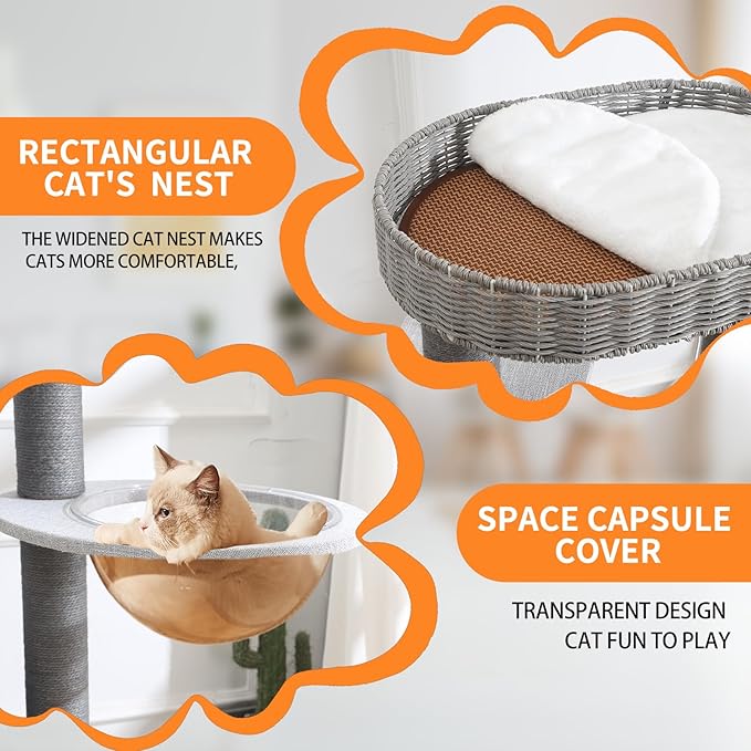 - đž Spacious Multi-Cat Design: This large cat tree features 5 levels with 1 enclosed caves,1 space capsule cat nest, 1 perches and 1cat scratchers, providing ample space for multiple cats to play, nap, and climb simultaneouslyâperfect for households with 3+ cats!