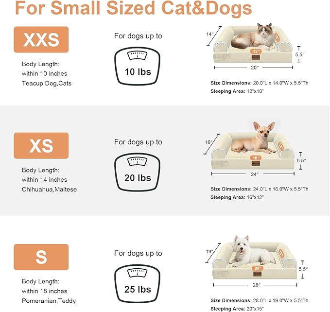 Small Dog Bed Orthopedic Washable: Beds Bolster Small Sized Dogs Bed Egg Crate Foam Couch Sofa Waterproof with Removable Cover - Beige