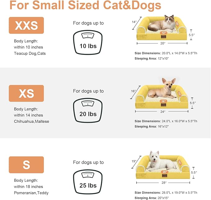 Small Dog Bed Orthopedic Washable: Beds Bolster Small Sized Dogs Bed Egg Crate Foam Couch Sofa Waterproof with Removable Cover - Ginger