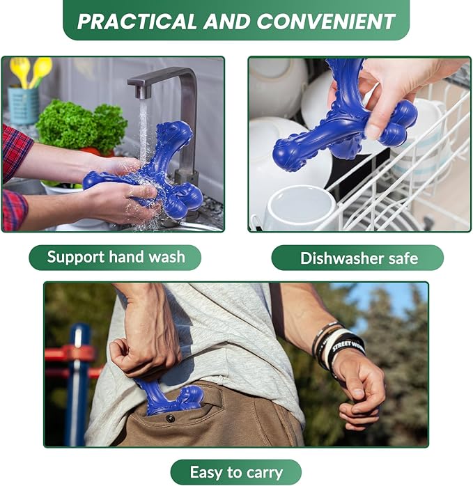 Dog Chew Toys for Aggressive Chewers Large Breed,Indestructible Bones Toy,Durable Cleaning Toothbrush Natural Rubber Dog Toys… (Deep Blue)