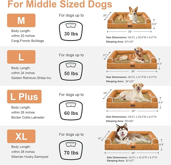 Small Dog Bed Orthopedic Washable: Beds Bolster Small Sized Dogs Bed Egg Crate Foam Couch Sofa Waterproof with Removable Cover - Orange