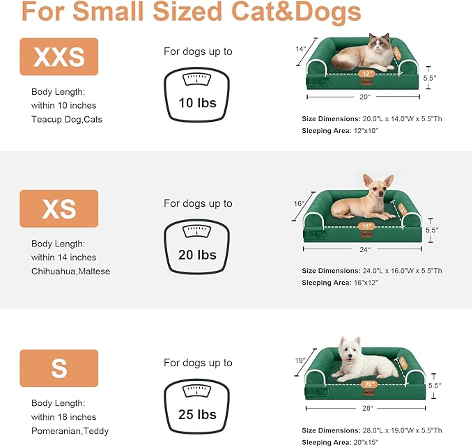 Small Dog Bed Orthopedic Washable: Beds Bolster Small Sized Dogs Bed Egg Crate Foam Couch Sofa Waterproof with Removable Cover - Emerald
