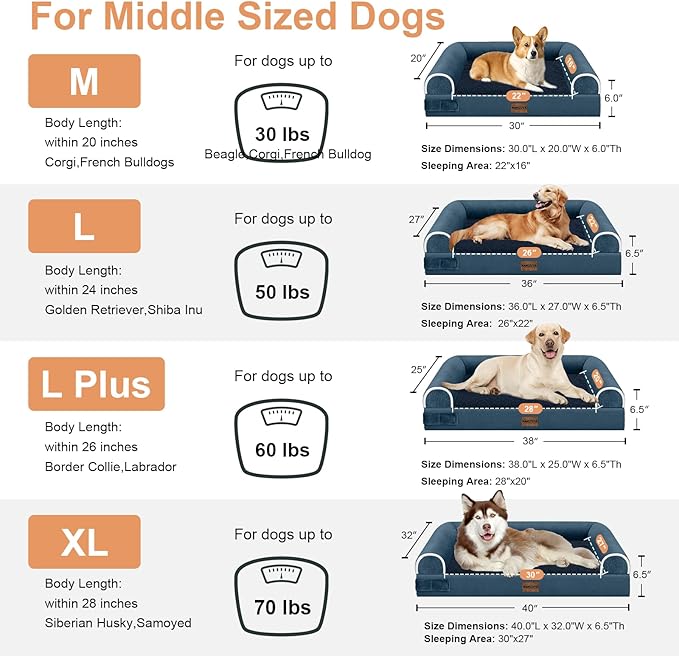 Large Dog Bed Orthopedic Washable: Beds Bolster XL Bed Large Big Dogs Egg Crate Foam Couch Sofa Waterproof with Removable Cover - Navy Blue